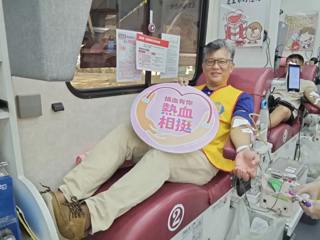 李國憲會長以實際行動投入捐血,呼籲社會大眾「熱血相挺,捐血傳愛」,現場氣氛溫馨感人。