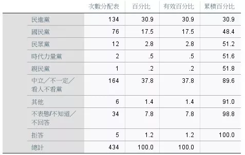 此次民調顯示,中立或「看人不看黨」者高達37.8%。