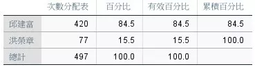 • 邱建富 vs 洪榮章:84.5% : 15.5%