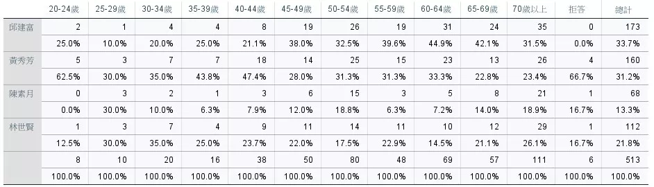 反觀黃秀芳則以「年輕、女性」形象受到青年選民青睞,20至34歲族群中支持度超過六成,顯示她在新世代中具高度滲透力。