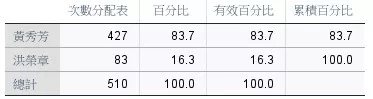 • 黃秀芳 vs 洪榮章:83.7% : 16.3%