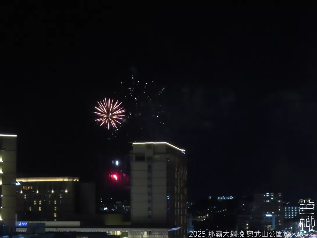 那霸大綱挽的另一項活動是在那霸港附近的奧武山公園施放煙火,從我的旅館房間窗戶可以看到空中綻放的煙火,所以拍攝了一點影片和照片放上來,本篇由 Frink Lau 劉天倫攝於 10 月 13 日