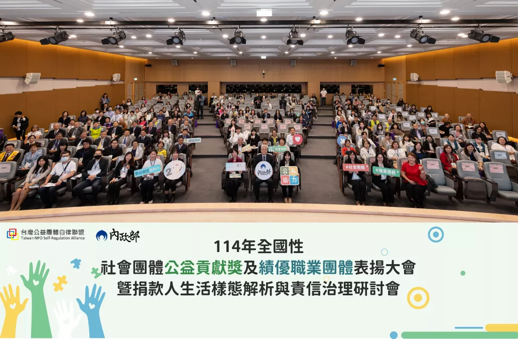 除了表揚績優團體外,主辦單位台灣公益團體自律聯盟舉辦「捐款人生活樣態解析與責信治理」研討會,聚焦「防詐」與「責信治理」兩大議題。面對詐騙手法日益多元,公益團體也接續受到詐騙所害,除應落實資訊安全與建立防護機制外,更要以誠信經營贏得社會信任;呼籲社會大眾審慎辨識詐騙手法,將愛心投入值得信賴的團體,讓每一份善意都能發揮最大效益。