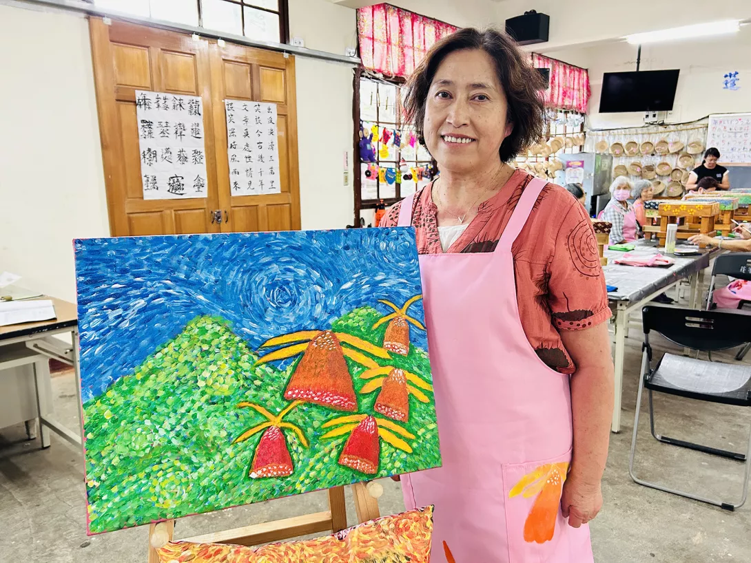展場中,長者的畫作如同一片片心靈風景,描繪著加里山的堅韌、一葉蘭的柔情,以及老年歲月的溫度。展覽之外,台灣銀粉村環境藝術協會將持續推動「樂齡友善行動」,包括長照服務、銀髮健康促進、社區陪伴與素人畫家培力計畫,並融合梵谷印象派的光影筆觸與草間彌生的繽紛色彩,讓農村風景成為國際慢城的文化畫布。