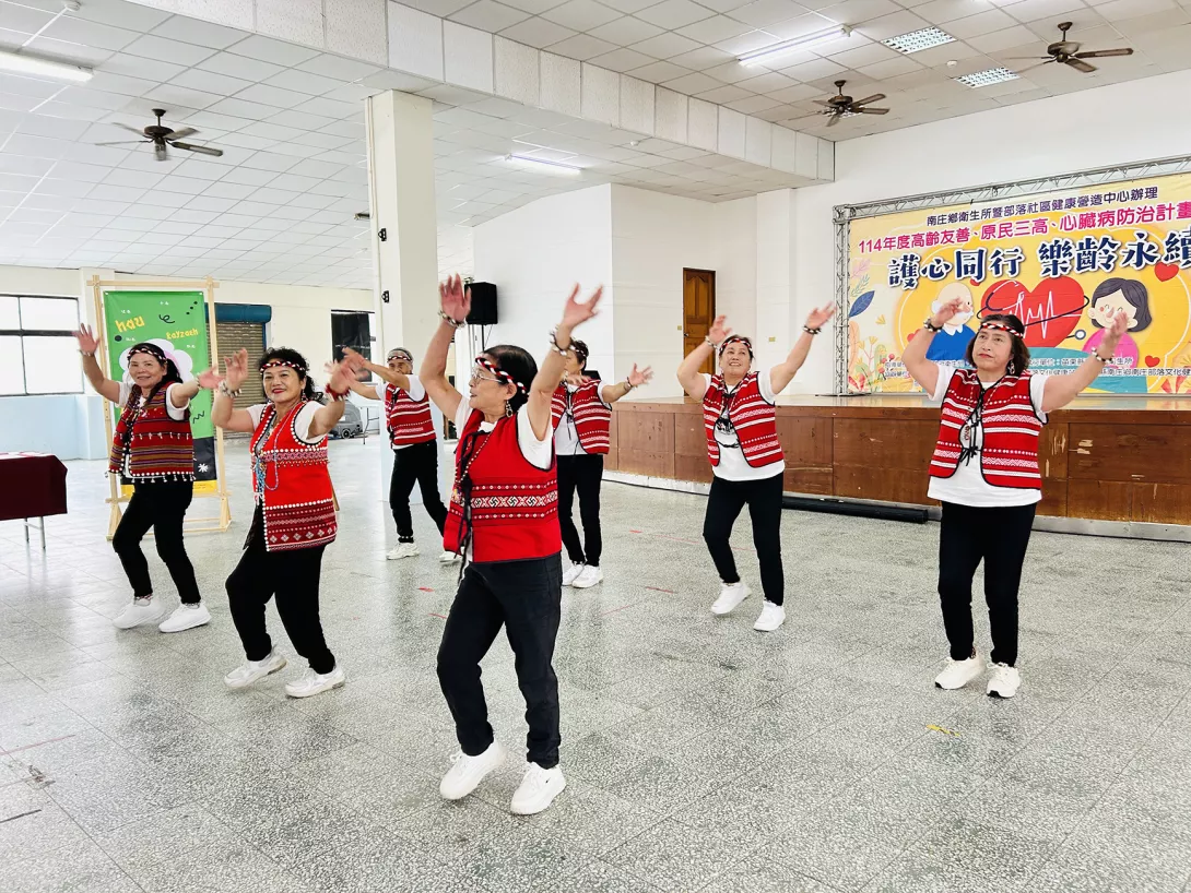 天氣晴朗的上午,南庄活動中心傳來陣陣笑聲與掌聲。這場以「護心同行、樂齡永續」為主題的綠色照顧成果展,聚集了長者、青年與社區居民,一同見證屬於南庄的幸福時刻。不同於一般靜態展覽,現場充滿原民舞步、歌聲與繽紛色彩,長輩們不只是觀眾,而是舞台上最閃亮的主角。