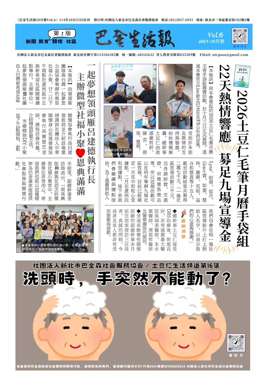 巴金生活報10月號出刊! 2025/10/27 20:22 ・ 18次瀏覽 ・ 0次分享 ・ 0則留言 PeoPo推 1 檢舉 地區 臺灣 新北市 三重區 分類 社會關懷 教育學習 生活休閒 標籤 巴金生活報 版權版權所有 All rights reserved. 分享 巴金生活報10月號出刊! 照片 照片