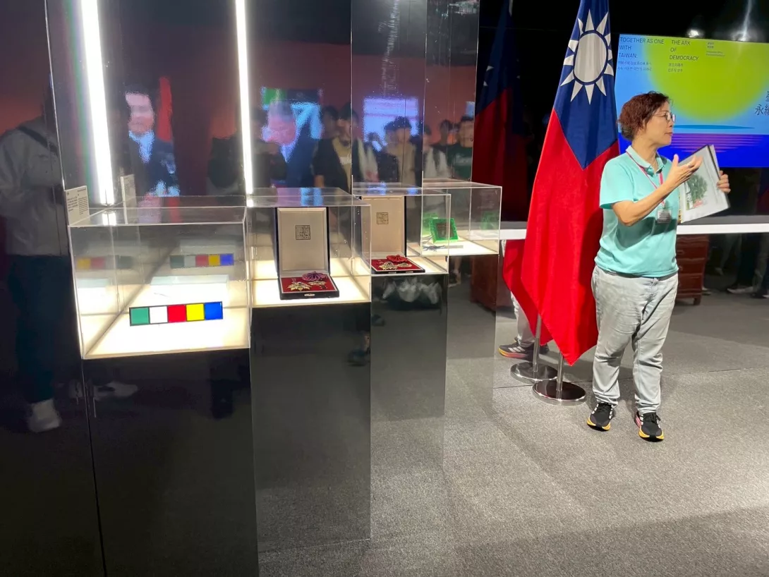 此次導覽以「民主方舟:臺灣永續前行」為主題,參訪團分三組依序進入展區。展覽以不同空間呈現臺灣的自然多樣性、科技創新力與民主精神,彰顯自由社會的活力與責任。