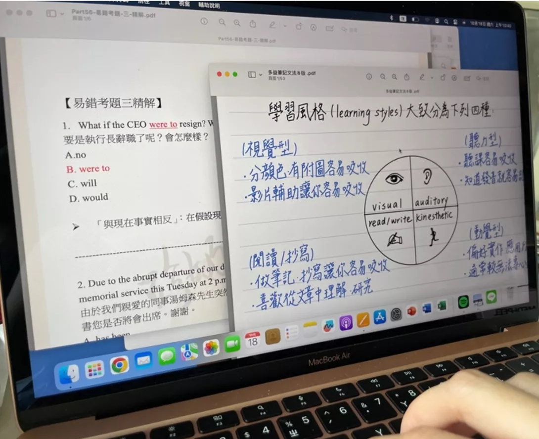 ▲學生利用閱讀課外的英文筆記來增強自身能力。攝|李彥雨