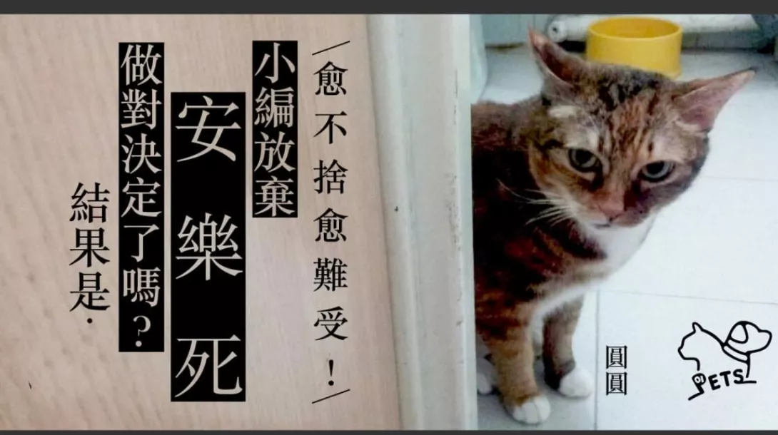 ,因為那一霎那你會很痛苦,那為什麼說支持對這些重症的犬貓也要實施所謂的安樂死 ,因為第一個,對整個環境或者是對牠 ,牠總比橫死街頭或者是直接曝曬在荒郊野地好,最起碼說,你還可以看的到牠走掉的樣子 ,那可以再把這些多的醫療資源再給其牠的貓犬。