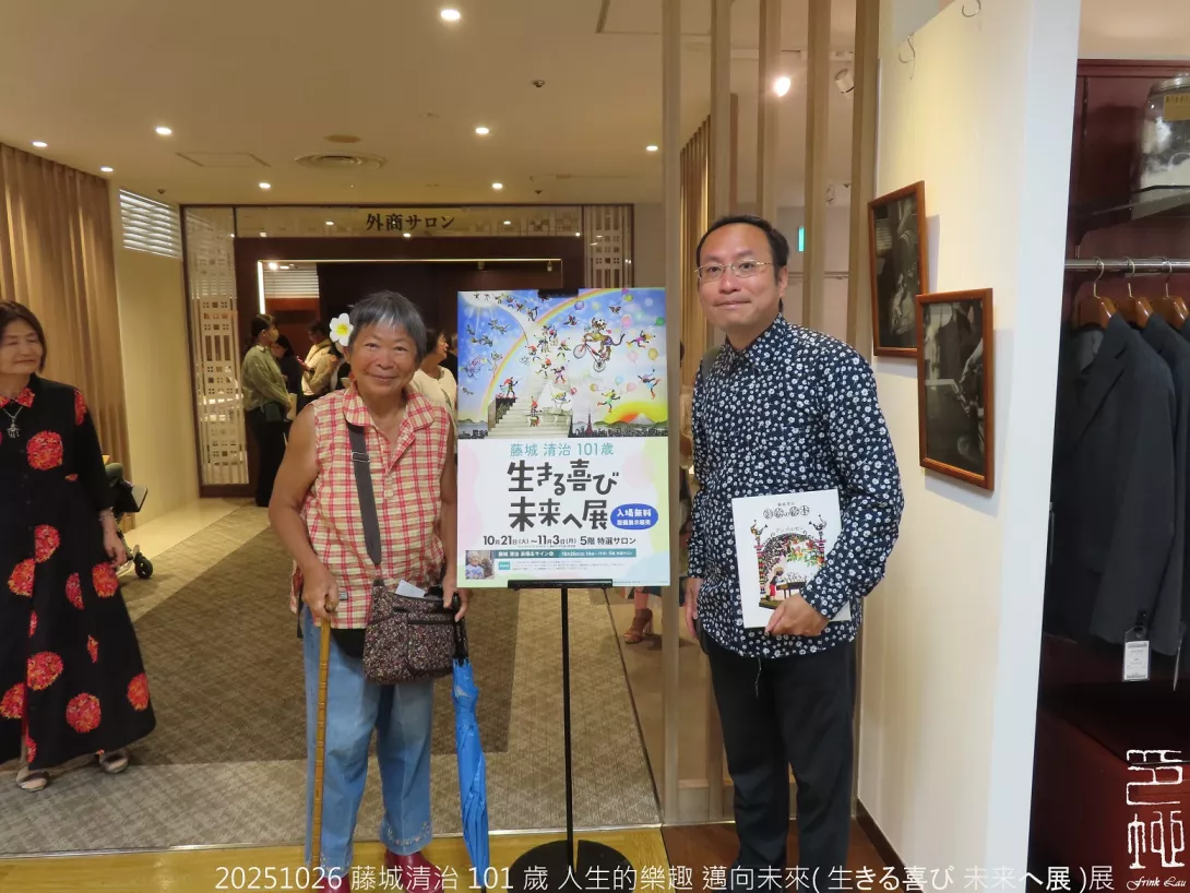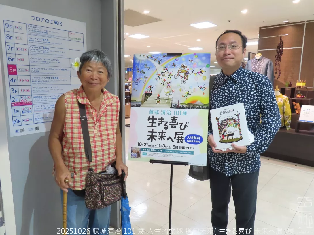 Frink Lau 劉天倫和母親鄭安琪參觀沖繩 RyuBo 百貨公司的「藤城清治 101 歲人生的樂趣邁向未來( 生きる喜び 未来へ展)」展,藤城清治先生親臨現場並揮毫一幅畫作,賓主盡歡,本篇攝於 2025 年 10 月 26 日