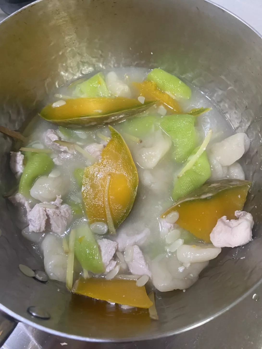 絲瓜 高麗菜 剩飯 肉放上方