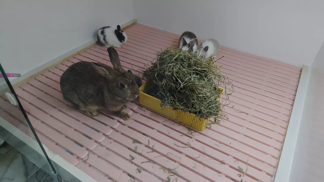 兔籠內有兔媽、兔爸、外加小幼兔共十隻