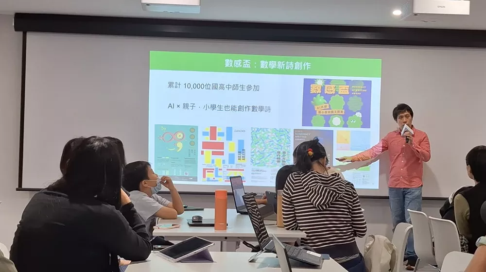 賴以威教授介紹,「數感實驗室」是一個專注於數學科普與教育推廣的團隊,長期在全台校園舉辦巡迴展與營隊。這次的活動也與「數感盃AI數學詩創作賽」相關,鼓勵國小中高年級到國中七年級的學生,嘗試用AI輔助創作,以文字探索數學的美感。
