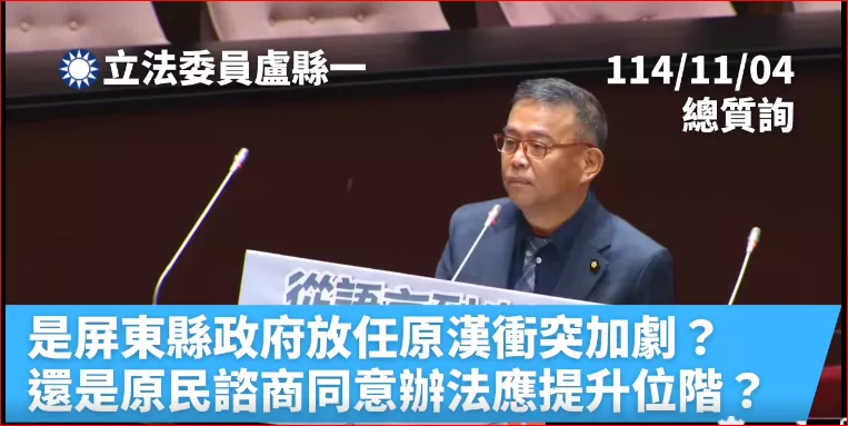 面對原民會正在公告修正《原民諮商同意辦法》,盧縣一立委就現行問題與修正草案,提出了四大面向的質詢與建議。