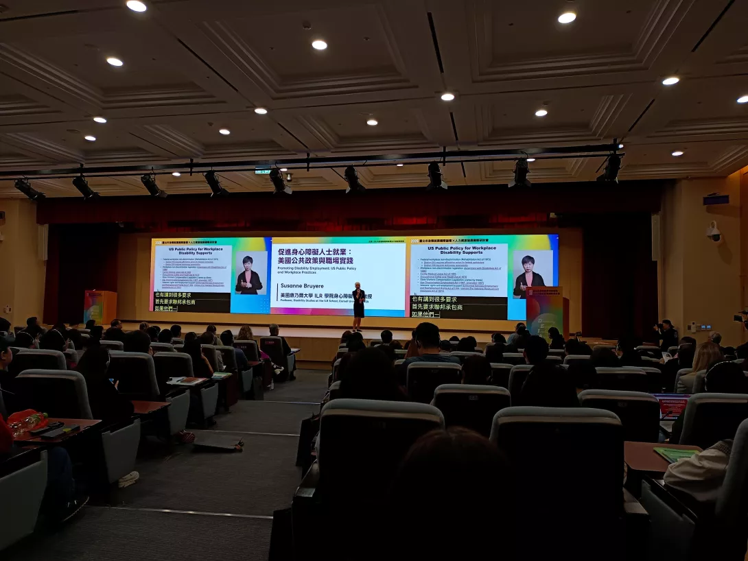 首場演說者是美國康奈爾大學 ILR 學院身心障礙研究教授 Susanne M Bruyere,她表示全世界有 16% 的人是身心障礙者,在美國適合就業的人只有 42% 的人順利就業;美國約有 80 個私人協會致力於消弭就業的歧視障礙;職業內容的描述也需要考慮讓身心障礙者願意來申請。