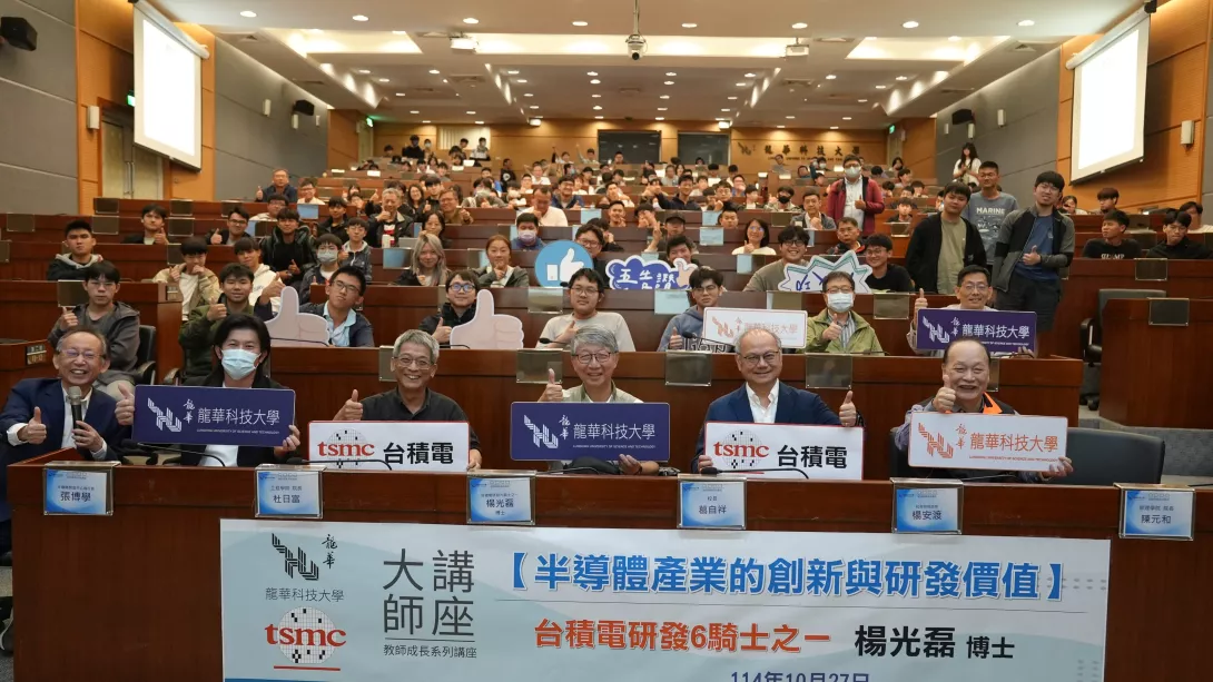 為強化半導體實作人才培育,龍華科技大學特禮聘前台積電研發長、素有「台積電六騎士之一」美譽的楊光磊博士為該校榮譽講座教授,第一講以「台積電研發心法與人才觀」為題,分享其在半導體產業的珍貴經驗與洞察。
