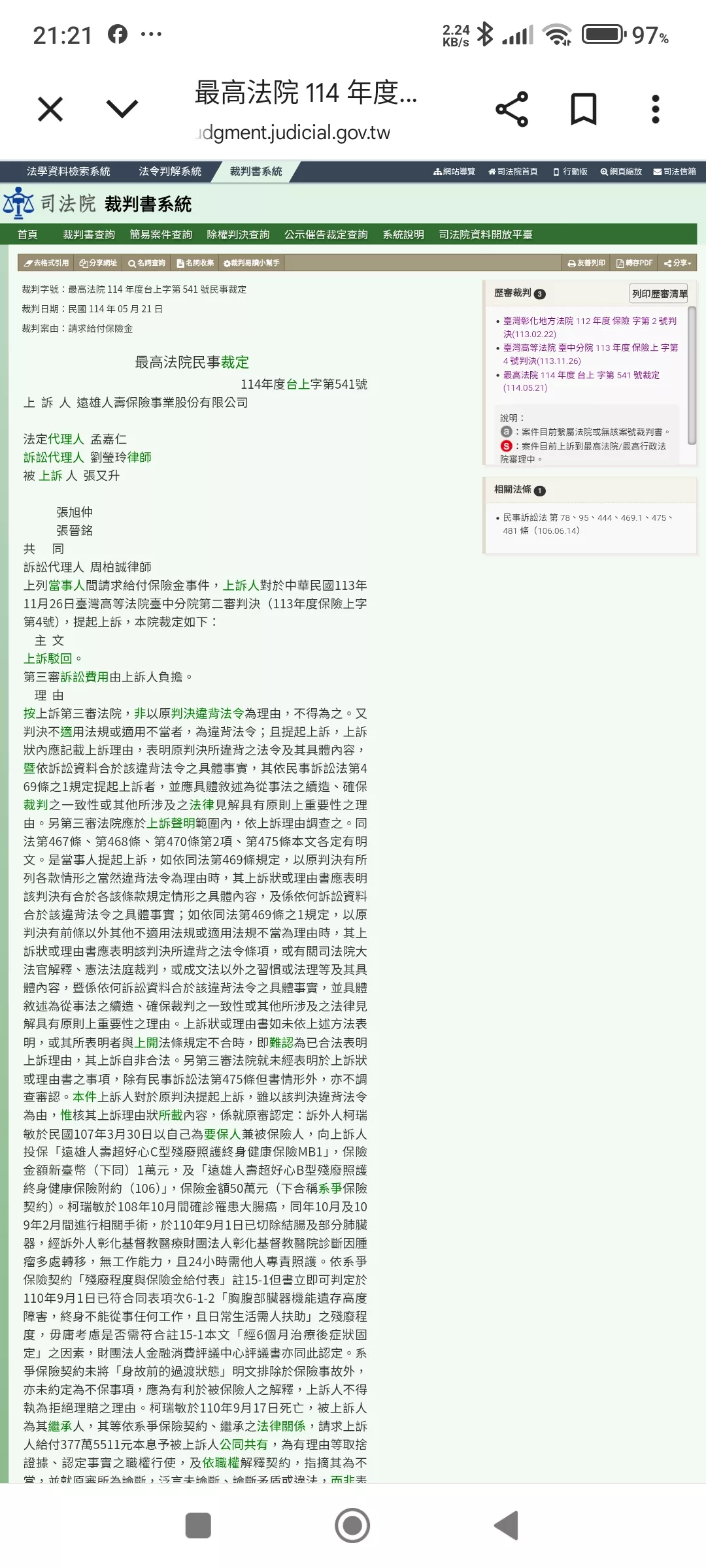 三審(被告上訴駁回),最高法院民事裁定 114年度台上字第541號
