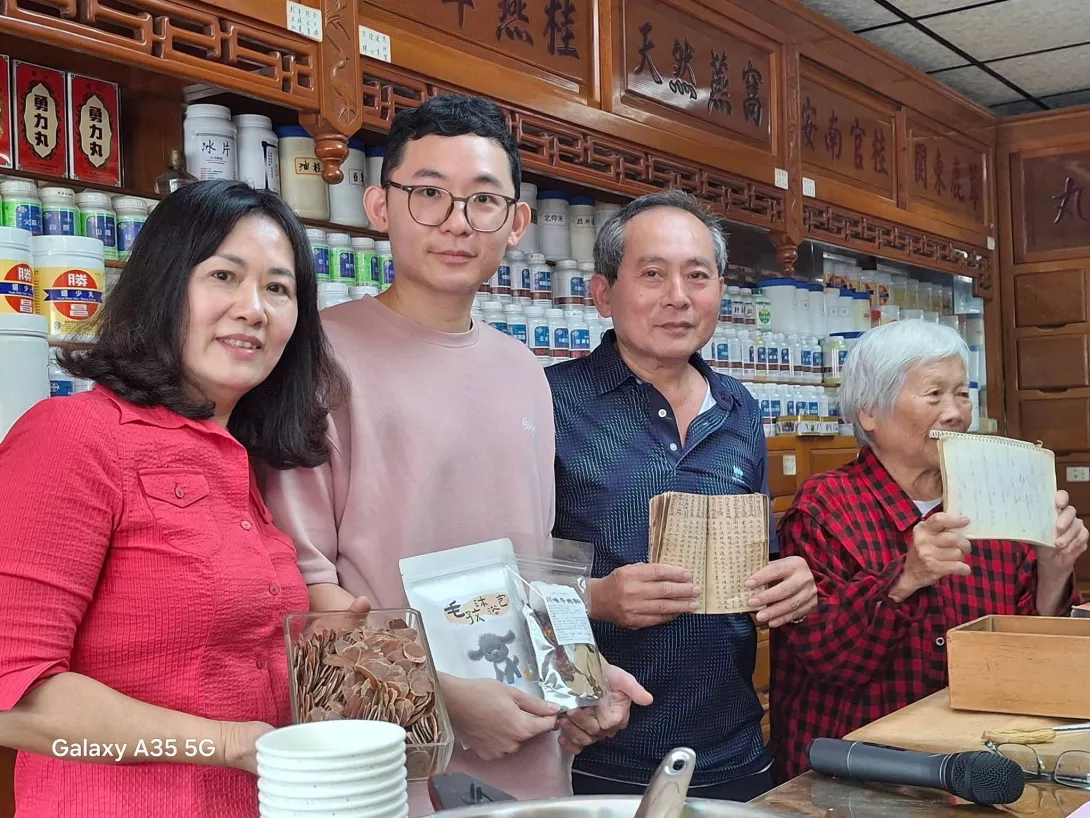(瑞安堂中藥行王詔郁與父母及阿嬤三代仍服務著鄉親們。記者林慧茹攝)