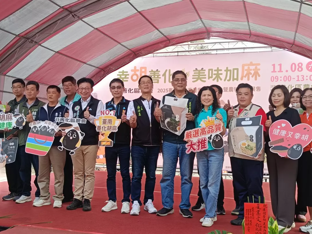農業局長李芳林指出,臺南市為全臺胡麻最大產區,種植面積約1,215公頃,其中善化胡麻的種植面積約175頃,為本市重要胡麻生產重鎮之一。善化區農會長年與農民契作並辦理收購,積極推動胡麻產業發展,並以自有品牌「醇善」為胡麻系列產品名稱,持續研發多樣胡麻加工品,如胡麻油、芝麻醬、芝麻糕點與冰品等,展現在地農產創新能量。