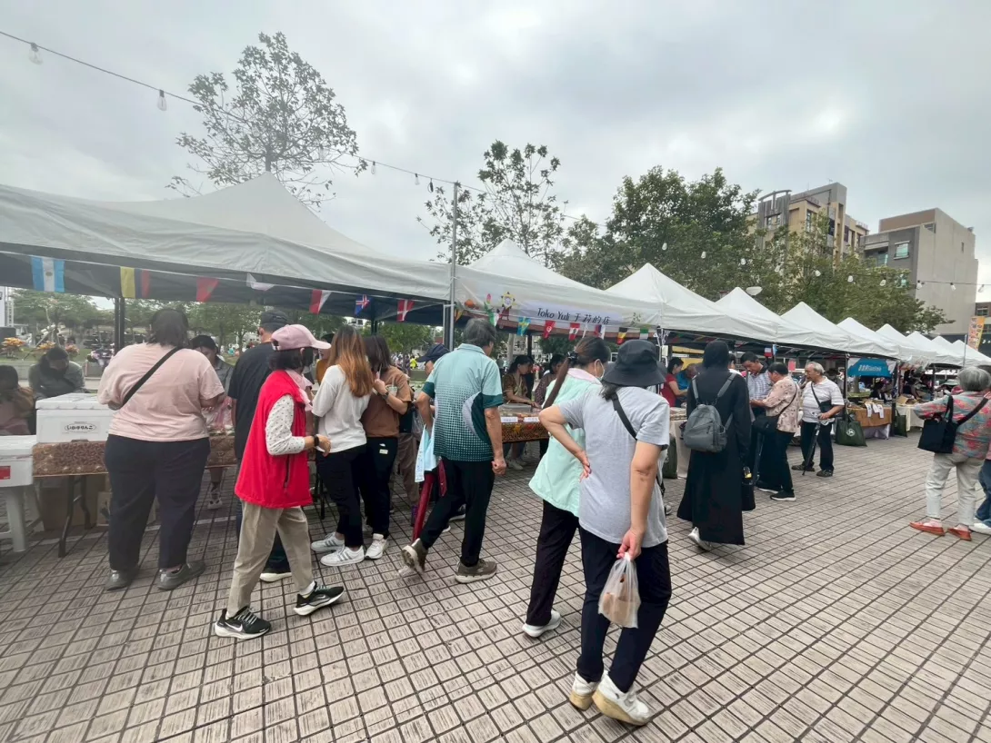 此外,異國美食更是市集一大亮點。中國、泰國、印尼、越南等多國特色料理齊聚一堂,包含湖南辣椒醬、手作貝果、雞蛋糕、泰式涼拌、越南春捲、越式涼拌米線、麻辣鍋底燙與木耳露等佳餚,吸引民眾邊逛邊品嚐,一次享受多國風味的美食饗宴。