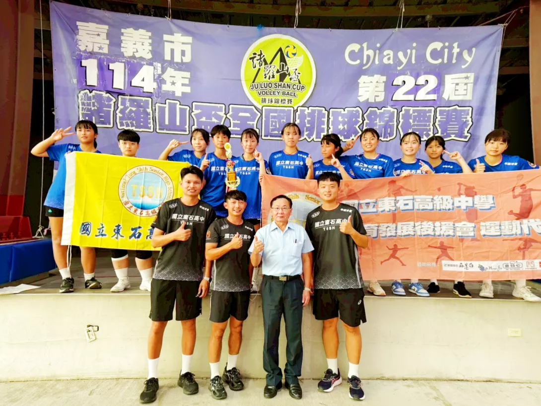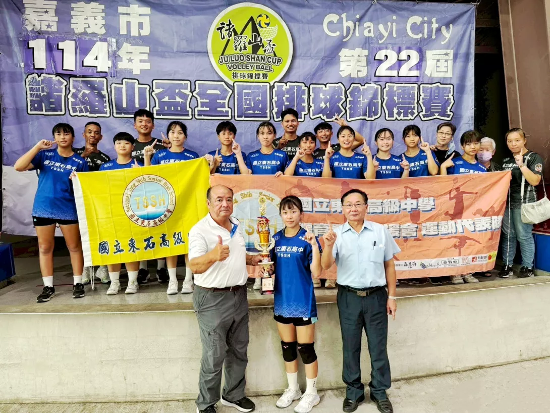 東石高中女排勇奪諸羅山盃冠軍~展現嘉義縣學子堅毅與團隊精神實在太棒!女排隊近年在師生合作訓練之下無論默契、技術、心態都非常出色,持續在各項全國性比賽中表現突出,此次再度奪冠,不僅為嘉義縣爭光,也為即將到來的115年全中運注入強大信心!