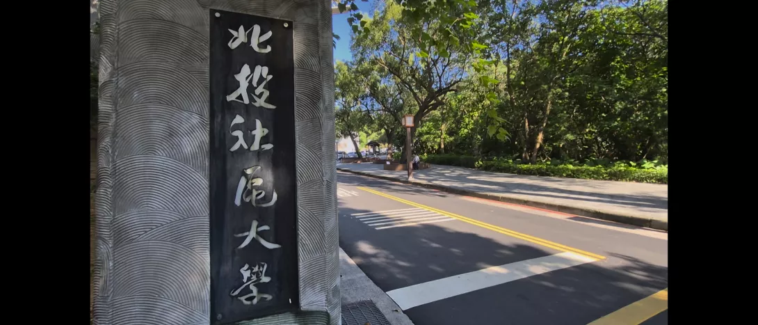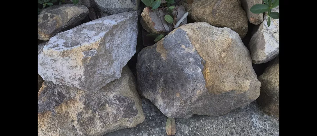 北投有二種石材,一種石材叫做唭哩岸石,另一種叫做安山石,小名就是觀音山石,我們學校為了讓更多人或者師生學員了解北投的這二種石材,其中一種唭哩岸石特地去買回來鋪在這路口。