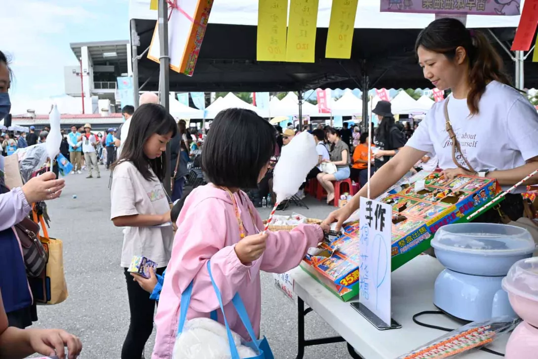 活動現場氣氛熱絡,從上午開幕,園區內笑聲與音樂聲不絕於耳。現場集結近百個攤位,包含花蓮在地愛心商家、家扶服務家庭的家長,以及家扶社工共同參與。攤位內容多元,從創意手作、特色小物到在地美食應有盡有,展現家庭自立與創業的成果。
