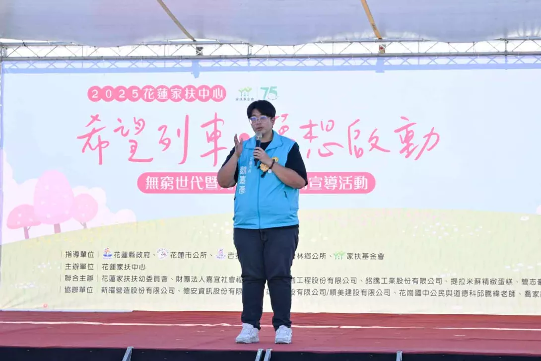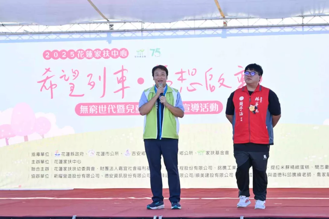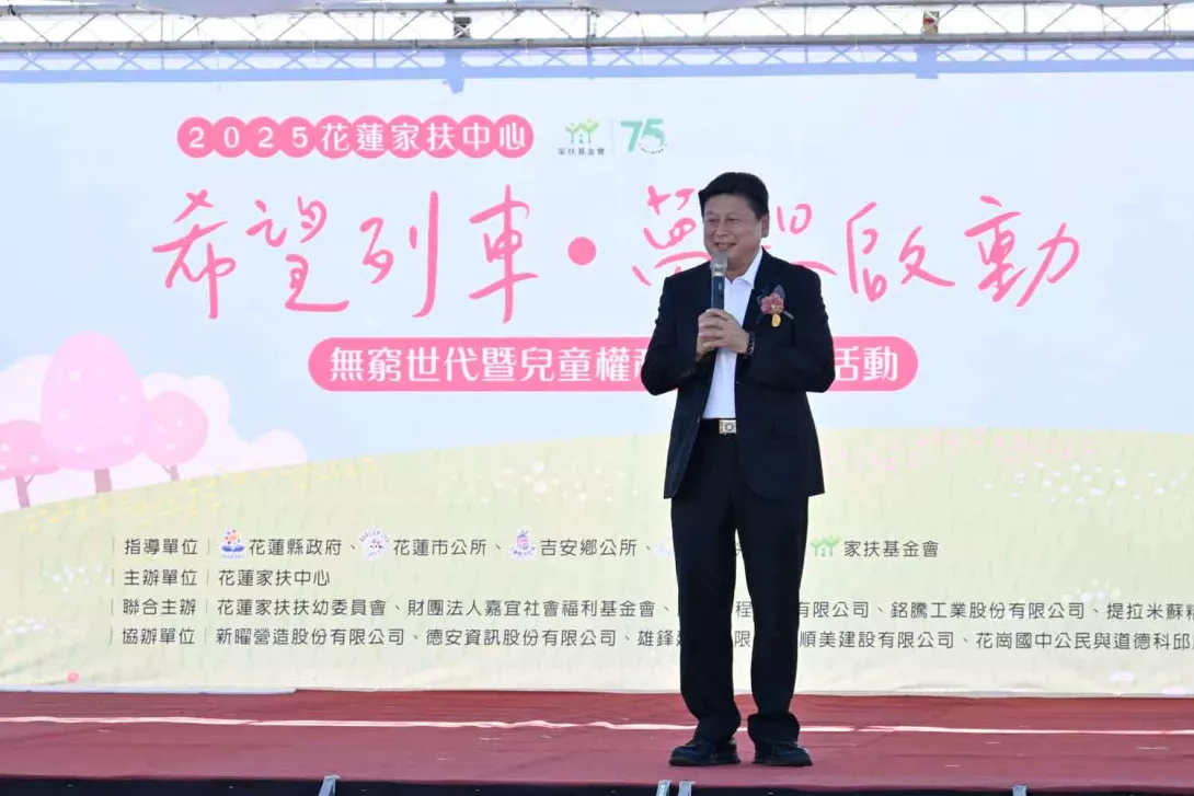 花蓮家扶扶幼委員會主任委員謝立德於致詞時表示,感謝大眾的參與支持,讓家扶能為弱勢團體做更多的事情。家扶不僅希望能補足孩子眼前的需求,更要陪伴他們建立自信與能力,培養自立的人生態度,孩子們不僅要有勇氣做夢,更要有力量讓夢想實踐。未來,家扶將持續以實際行動守護在地弱勢家庭,讓希望的列車持續前行,帶著社會大眾的愛與關懷,陪伴孩子勇敢邁向充滿可能的未來。他也鼓勵在場民眾盡情享受園遊會的氛圍,一面享用攤位的美食、購物,同時也能做公益,好好為弱勢團體加油。