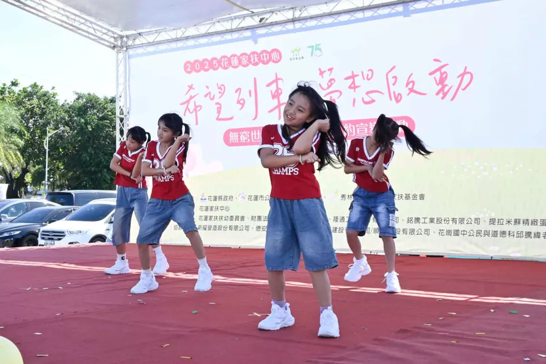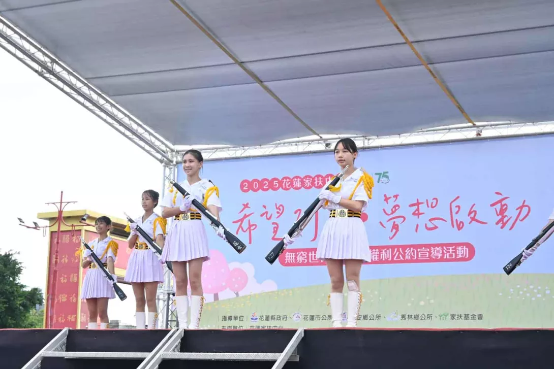 除了市集,舞台區的表演同樣精采。活動由花蓮女中儀隊開場,整齊劃一的操槍表演展現出高昂志氣。家扶中心培育的JF舞蹈於中場登場,以充滿活力與自信的舞姿,展現孩子們在家扶支持下的成長與改變。隨後登場的還有多組在地優秀表演團體,包括國立東華附小扯鈴隊、花崗國中邱騰緯老師、快樂寶貝園幼兒園、中華國小木箱鼓隊、勝安社區舞蹈班、花蓮縣東台灣新生活發展協會、花蓮縣米浪律動學會,以及富源國中鼓陣隊,贏得觀眾熱烈掌聲。