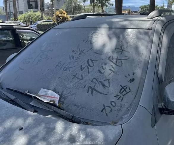 ▲志工們在堆滿灰塵的車子上寫下鼓勵話語。(圖片來源:鏟子超人楊絜米提供)