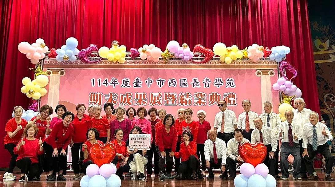 114年度臺中市西區長青學苑成果展暨期末結業典禮於忠信國小熱鬧登場,社會局專門委員吳文楦特別代表盧秀燕市長到場致意,與西區區長王瑞嘉共同頒發學苑教師贈禮及班代感謝狀。值得一提的是,「日語歌謠班」超過90歲的長輩就有10位,最高齡者達93歲,長青學員以實際行動詮釋「活到老、學到老」的精神,令人敬佩。