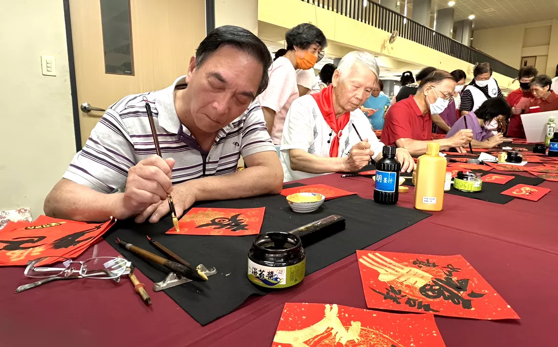 ▲「養心書法藝術班」學員春聯現場揮毫,氣勢不凡。