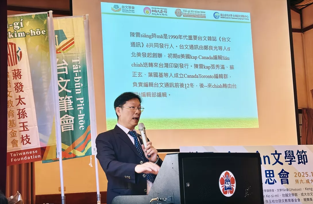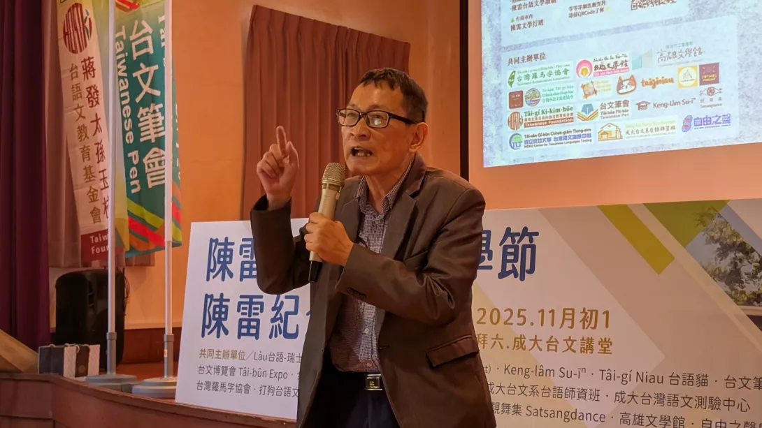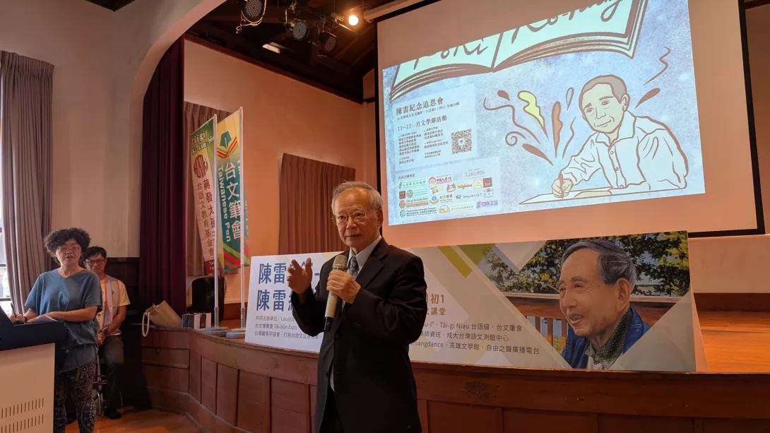 台灣戰後重要且具代表性的作家之一陳雷(吳景裕1939~2025)於今年6月28日病逝。台文界特於11月1日假成大台文系台文講堂辦理陳雷追思會及陳雷台灣文學展開幕,陳雷之牽手張明美女士、親戚陳水扁前總統及許多台文界作家與學者均出席與會。