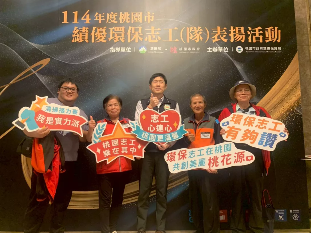 桃園市環保局今11月14日晚上舉辦「114年度桃園市績優環保志工(隊)表揚活動」由張善政市長親自頒獎,表揚45名績優環保志工與10支績優志工隊,肯定他們長期投入環境保護工作的努力與貢献。活動中也特別表揚代表桃園市参加環境部「114年全國環保志(義)工群英會」決賽並在四項競賽取得特優名次的四支隊伍,以壓倒性表現為桃園爭光。現場有300多名志工夥伴共同參與見證榮耀時刻。