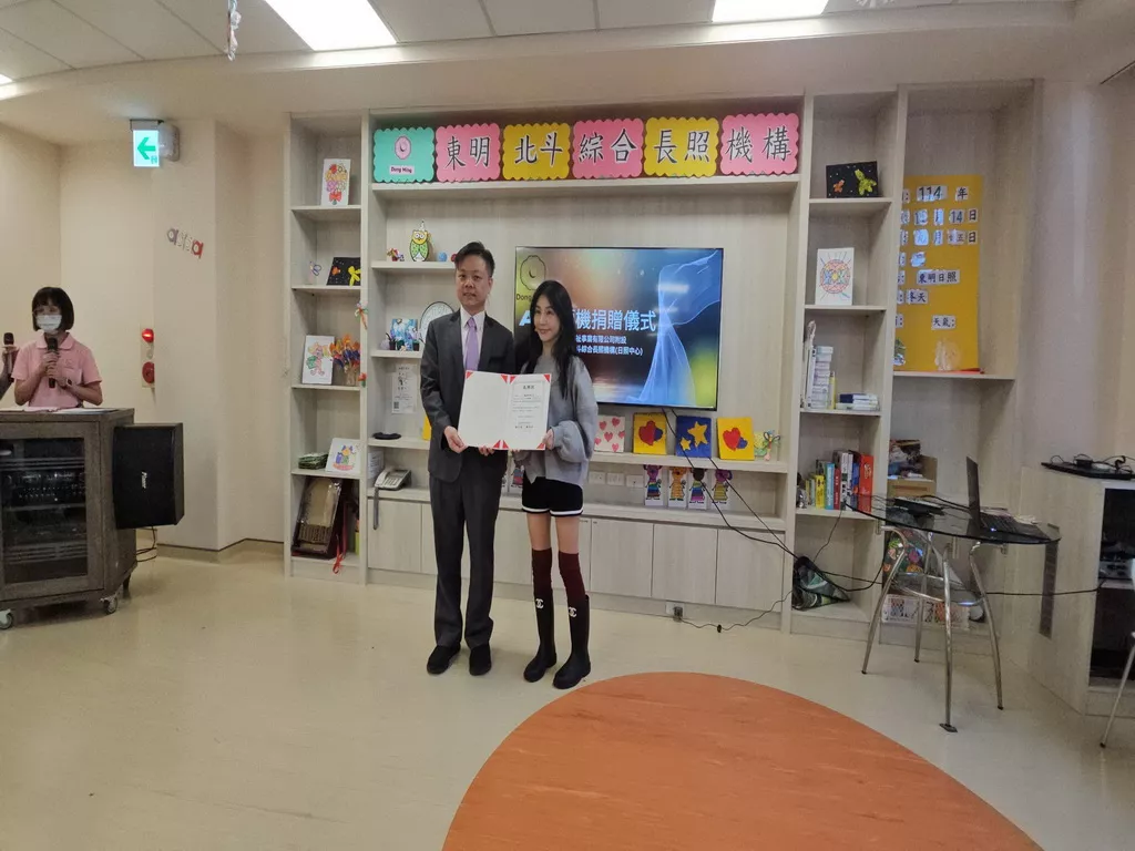 ▲接受偽裝有限公司捐贈兩台AI智慧洗頭機,東明健康福祉事業集團江能妥善運用於所轄住宿型機構。(圖/記者周厚賢攝)