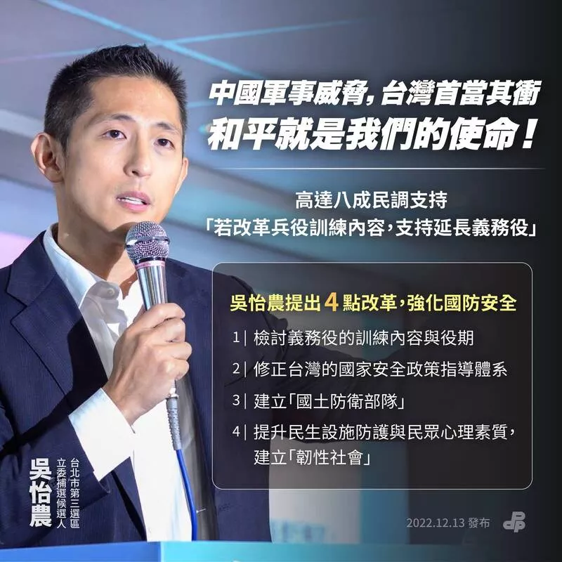 吳怡農是要參選市長不是要選總統,軍人、軍隊、國防是總統職權。2020 會敗也是因為這個參選政見【跑錯考場】的緣故。
