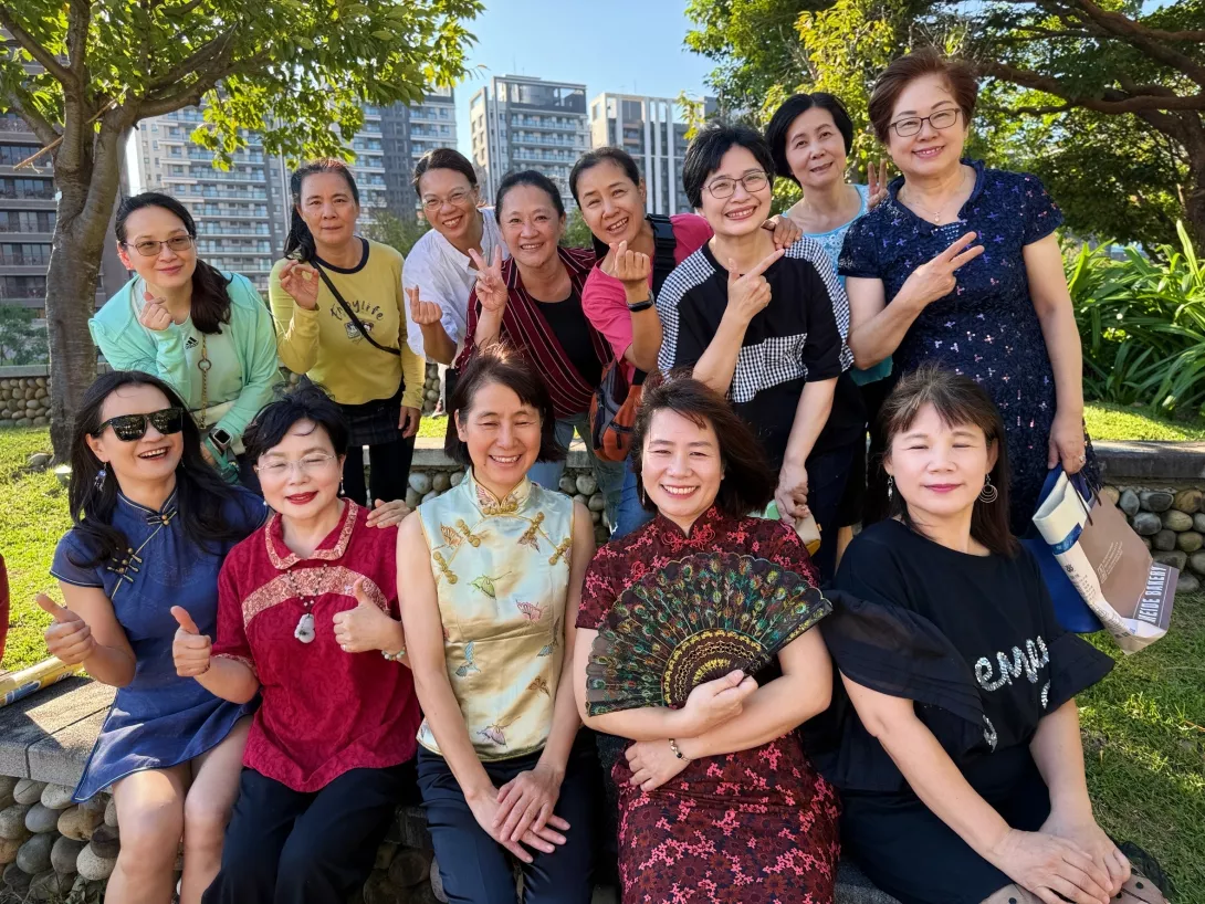 桃園社區大學學員劉明珠:我覺得這會讓我們想起很多以前的回憶,我覺得蠻好的。參加社大是一件很棒的事情,活到老學到老。我以前買衣服,喜歡買大2號的,以前就預感自己會胖的。今天老師說要穿古早的衣服來,我找不到就剩下這一套了。