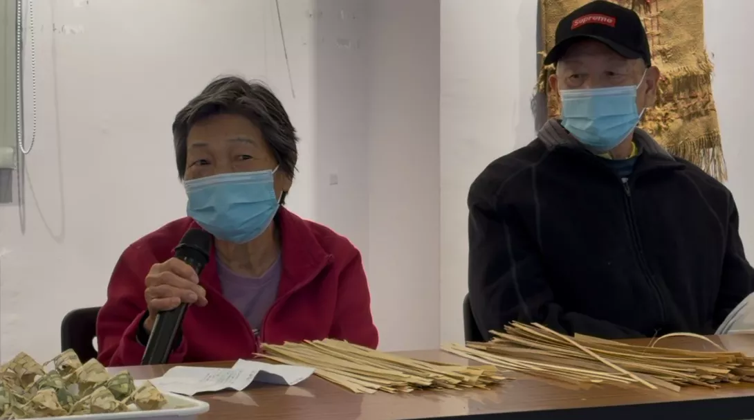 高齡八十五歲的王玉珠老師專注編織的模樣,