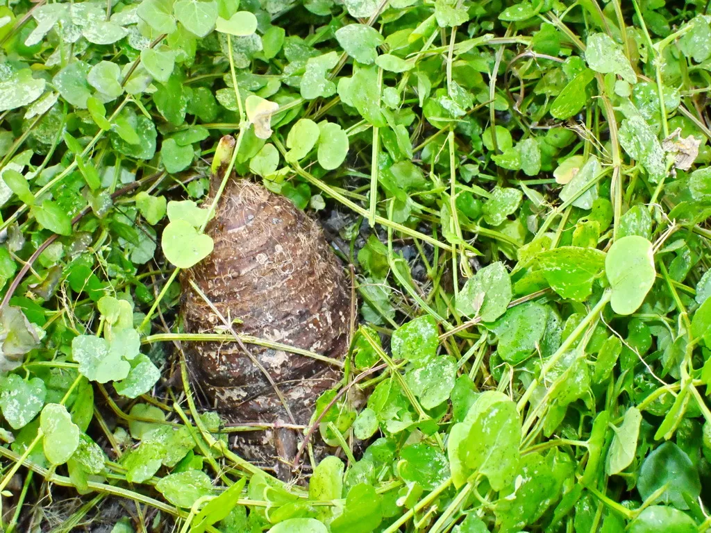 ▲被錢幣草覆蓋的飽滿的芋頭,顯見鄭錫禧校長無毒農業的成果。(圖/記者周厚賢攝)