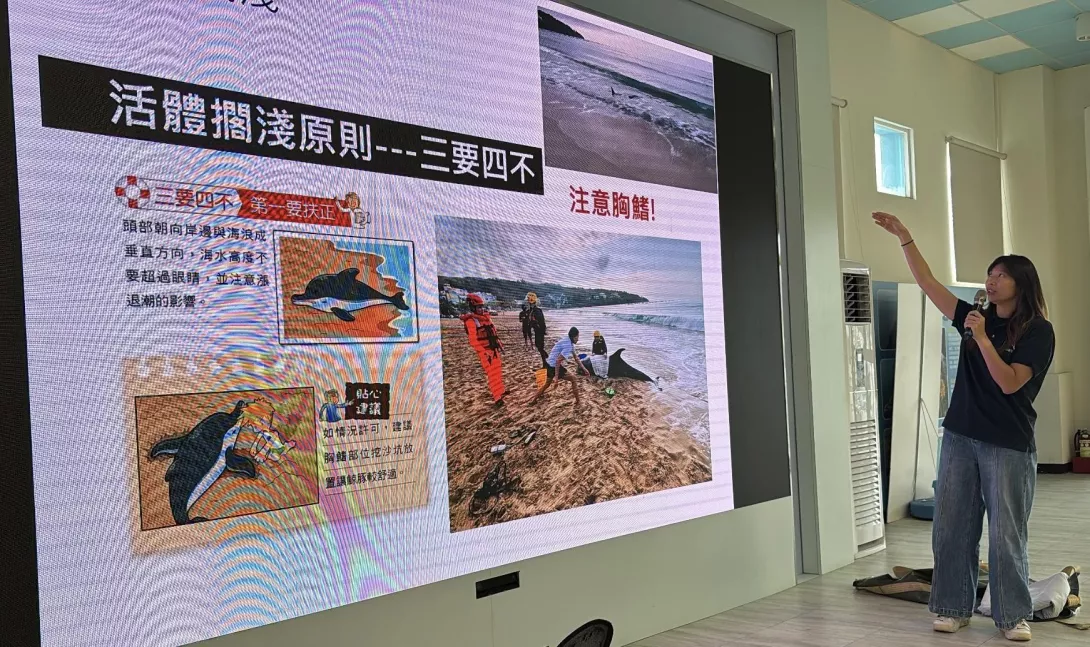 鯨豚與海龜擱淺事件近年來頻傳,中華鯨豚協會吳佩穎救傷暨調查專員強調,面對鯨豚與海龜擱淺事件時,民眾撥打 118 通報後必須遵循「三要四不」原則,避免出於好心而對垂危個體造成二次傷害,讓專業單位介入。
