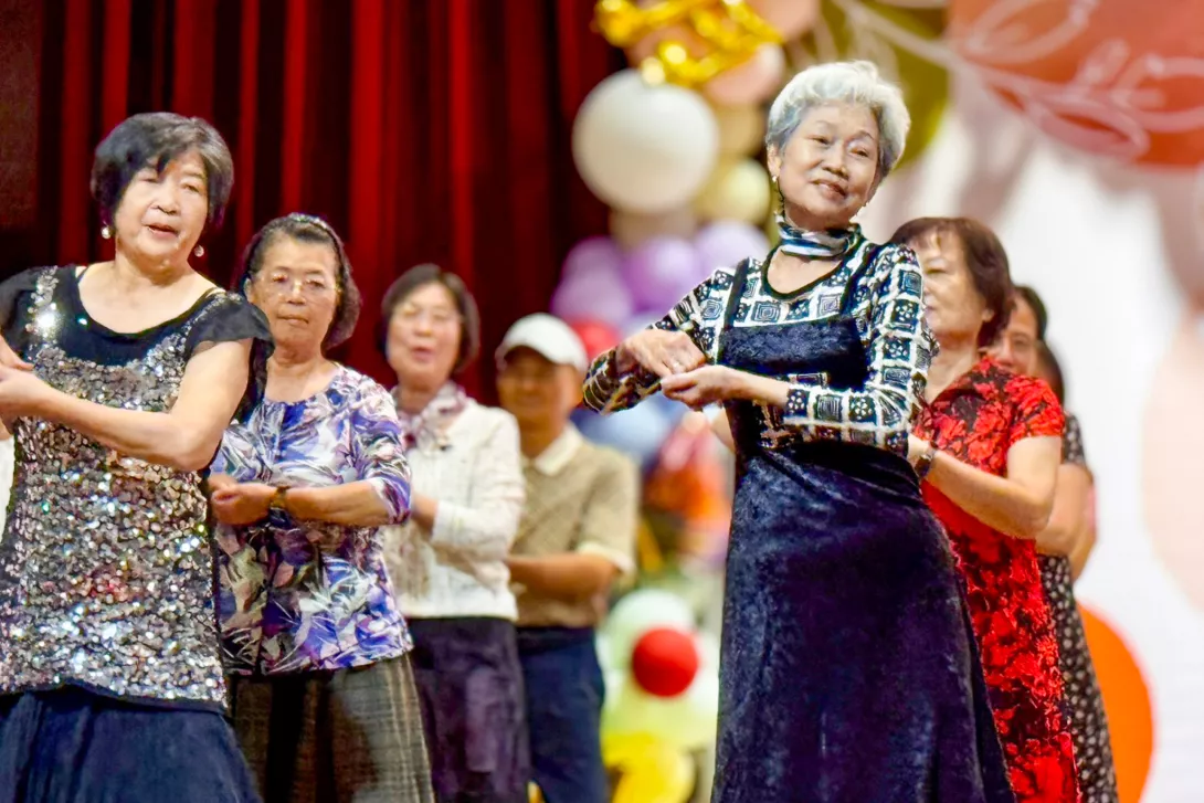 ▲南屯區長青學苑「健康樂活趣動動班」,學員平均年齡超過72歲,以動感舞蹈表演贏得全場掌聲。