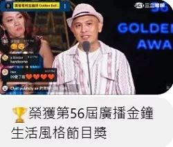 2020年: 快樂聯播網《原味廚戀》(主持人)。該節目內容備受肯定,成功摘下金鐘獎殊榮。