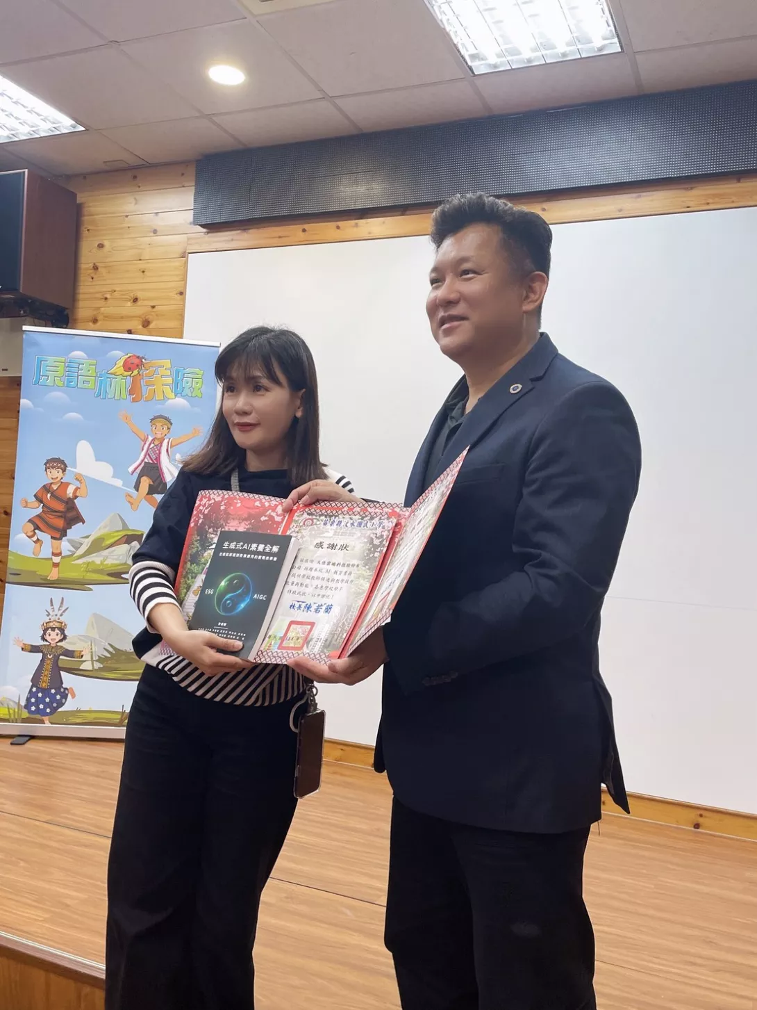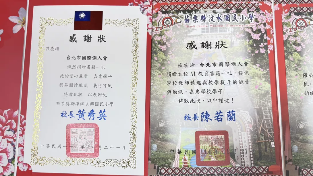 為協助偏鄉學童接軌科技時代並深化原住民族語文化教育,台北市國際傑人會於 11 月 21 日下午三時前往苗栗縣泰安鄉汶水國小,舉行 AI 教育書籍捐贈與族語數位平台展示活動。本次除了致贈六十四冊 AI 教育書籍,也由智慧價值股份有限公司展示「原語林探險」族語遊戲式教育平台,使學生能以互動方式學習族語並體驗科技的魅力。