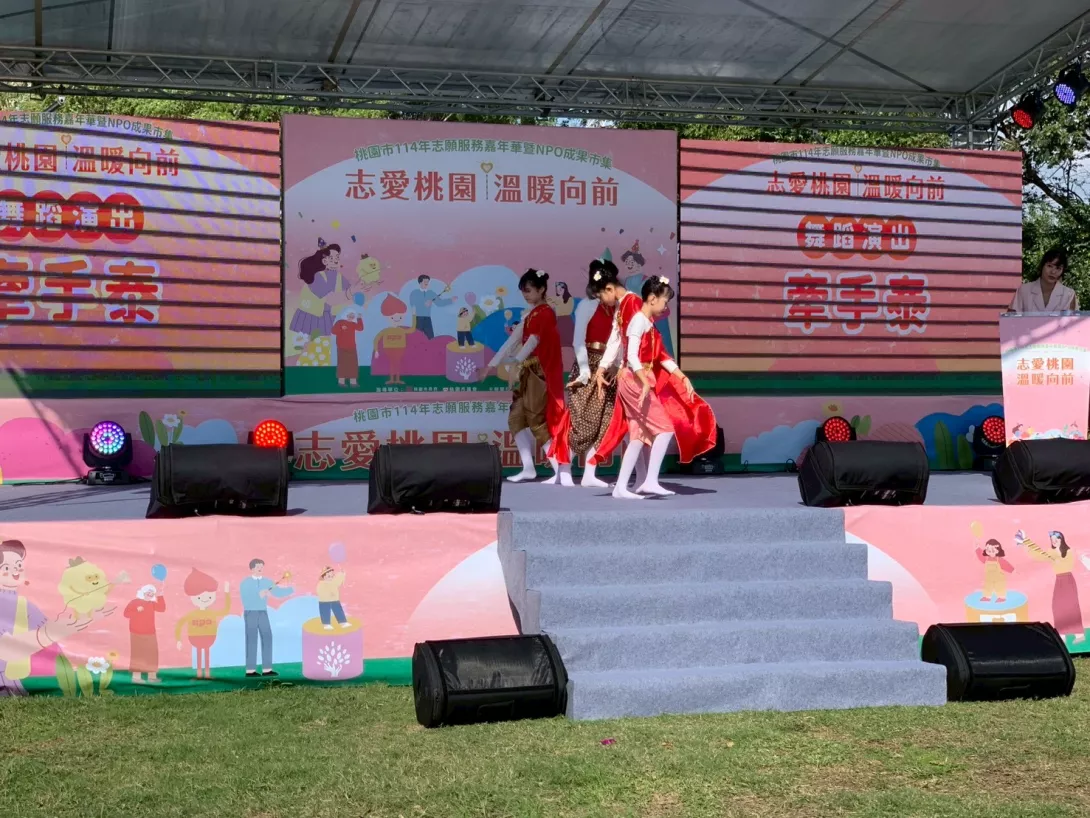 活動由15個志工團體輪番帶來熱力十足的展演,展現志工服務的凝聚力與生命力,活動首先由新住民團體以文化融合表演揭開序幕,象徴桃園城市的多元包容與文化共榮、現場共規劃6個政令宣導攤位、24個非營利組織攤位及20個志工成果展示攤位。内容涵蓋防暴宣導、兒少保護、衛生保健、癌症篩檢、性別平等倡議、志願服務介紹與召募、野生動物救傷等重要議題,並展示原住民手工藝品、手作體驗及公益美食義賣等,呈現公益與多元文化交織的城市樣貌,充分展現桃園志工與NPO的永績能量。