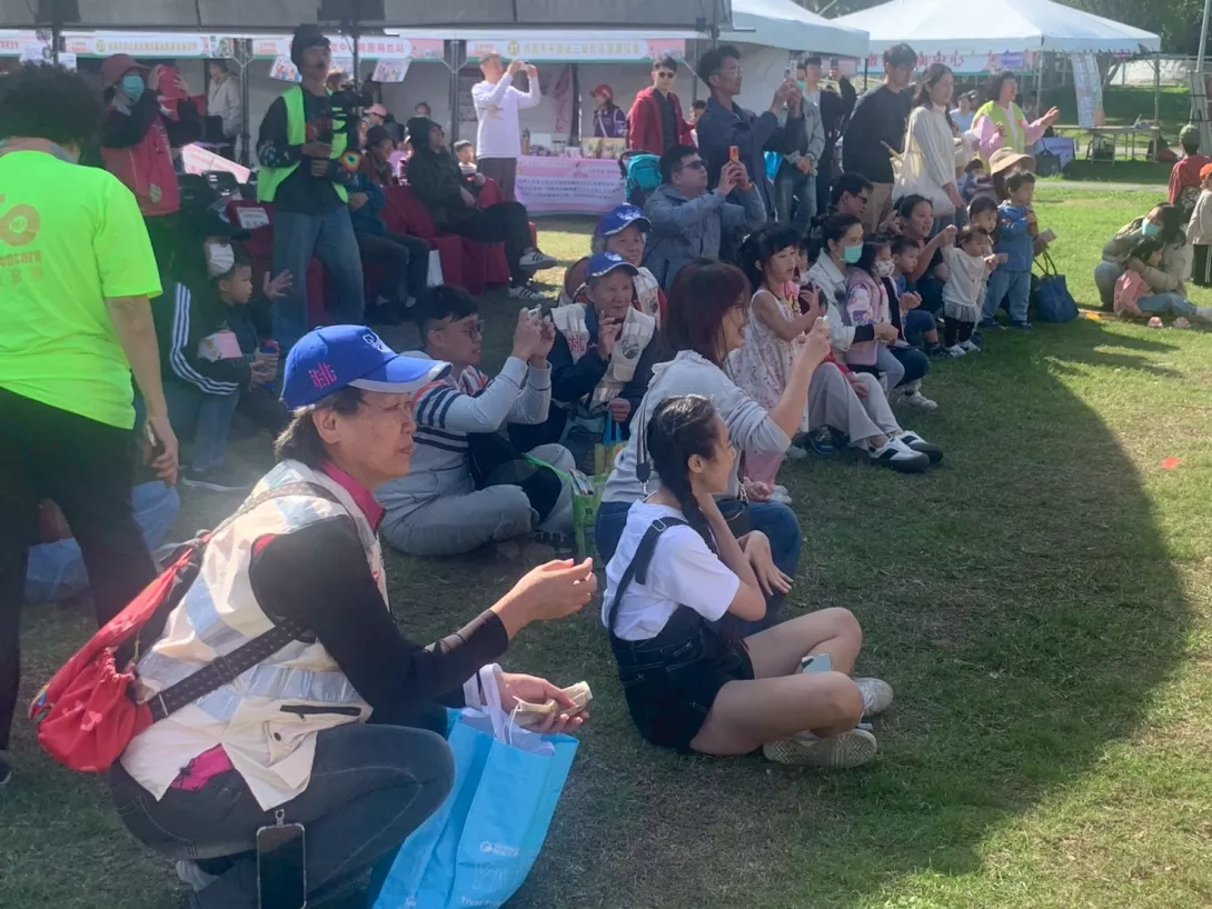 現場氣氛熱鬧温馨,YOYO台哥哥姐姐帶來的親子互動唱跳節目深受大小朋友喜愛,台語歌手曾瑋中的演出更赢得民衆熱烈掌聲,使活動現場充滿活力與歡笑。民衆完成闖關集章活動後,即可獲得限量「壓縮行李袋」,並參加現場場摸彩。本次摸彩共準備30項精美禮品,其中「韓國雙人來回機票」最受矚目,吸引許多民衆熱情參與,活動氣氛熱鬧非凡;而現場拍貼機體驗區更成為民飛争相合影的熱門亮點。
