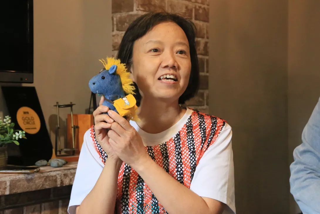 布藝師媽媽介紹自己設計的布娃吊飾時顯得自信滿滿