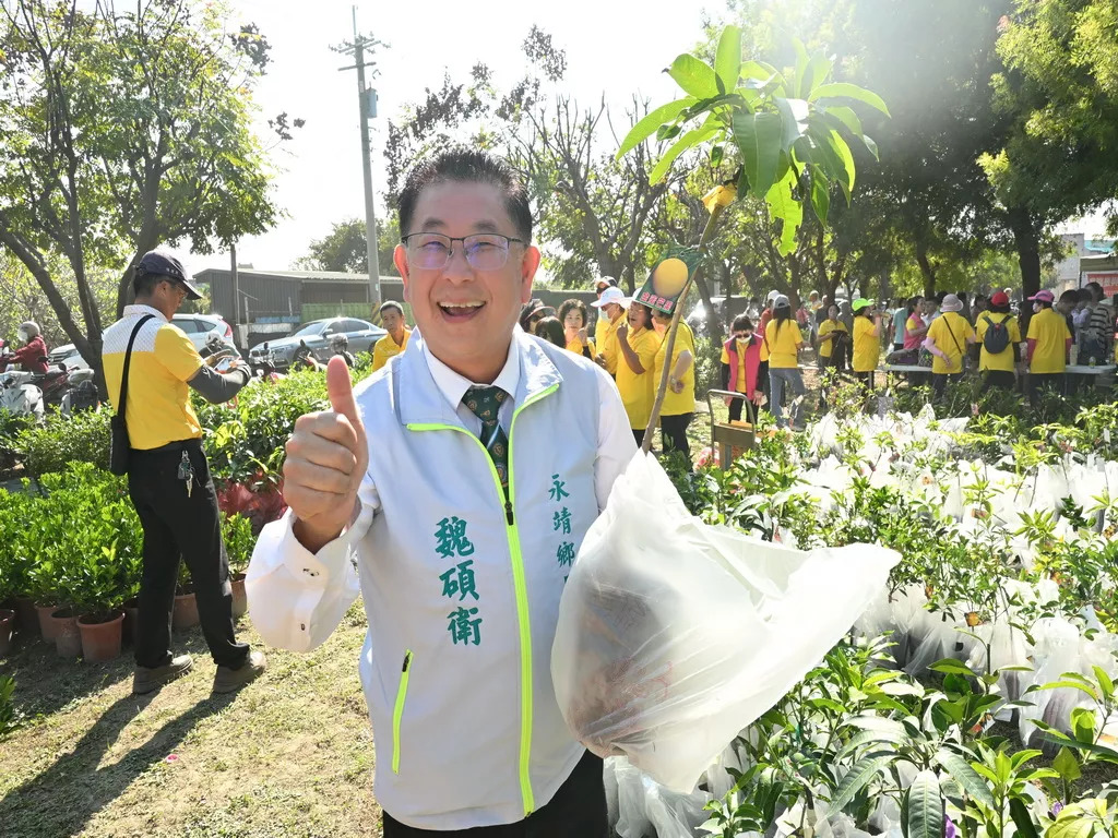 今年的活動更是格外特別。鄉長及公所團隊準備了多種水果苗木贈送給鄉親,包括當紅的金蜜芒果、平地即可栽種的水蜜桃、高品質百香果,以及市面上少見的沙糖桔等。鄉長魏碩衛表示,這些優質果苗均源自永靖栽培,並行銷全國,是永靖傲人的產業實力。