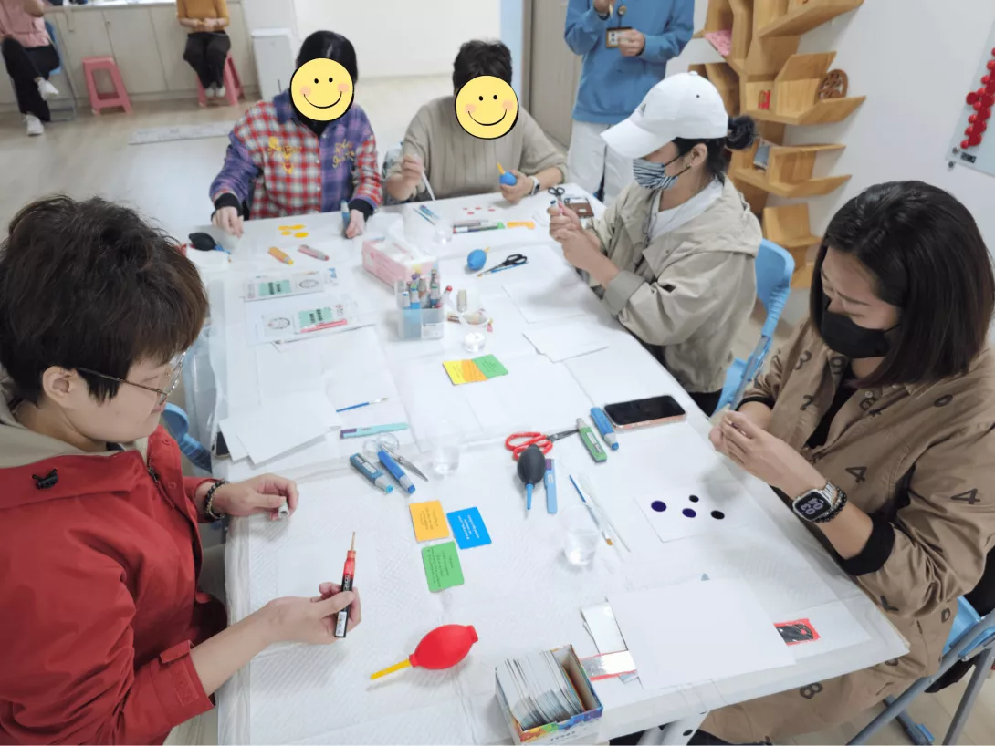 11月21日「淡水生活節」的溫暖時刻,亞太心理腫瘤學交流基金會與淡水心理衛生健康中心、馬偕紀念醫院癌症中心、 Issa 斜槓瑜婦戀生活,共同舉辦「酒精墨水噴畫藝術療癒工作坊」,帶領民眾、癌友與照顧者,透過色彩的流動,探索內心世界,在藝術中找到安放情緒的出口。