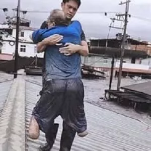 道路已經中斷,泥水帶著腐爛的氣味湧入屋內,水位爬升的速度遠超想像。周圍的鄰居們在呼喊、在焦急地尋找彼此,但要把一個成年人抬出已被泥濘半掩的屋子,在那個混亂的時刻,是多麼艱鉅的任務。大哥知道,每多花一秒鐘救他,就可能讓救他的人多一分風險。