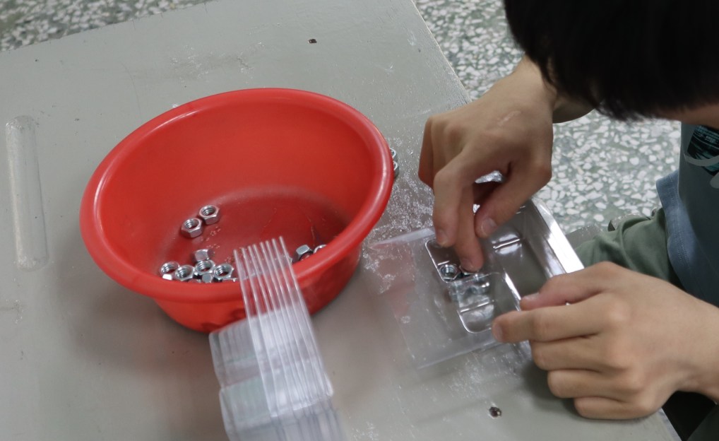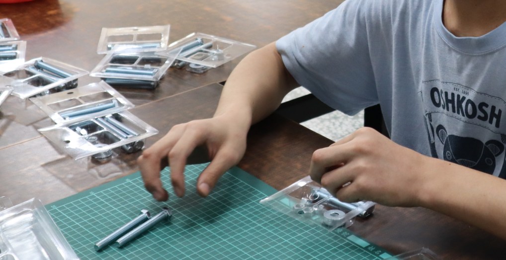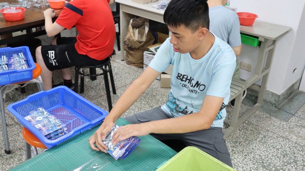 【記者張梓豪、池亮庭/嘉義市西區報導】孩子分工完成螺絲、螺帽代工的任務,有人負責數配件的數量、有人負責包裝等,這些是星兒希望工坊的日常,透過「工作」的訓練,還能學會生活自理與情緒控管等能力。